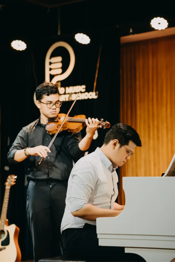 Đội ngũ giảng viên tốt nghiệp chuyên ngành Violin từ các Nhạc viện danh tiếng. Học viên được chỉnh sửa tỉ mỉ từ tư thế đứng, cách cầm đàn đến kỹ thuật điều khiển cung vĩ để tạo ra âm thanh trong trẻo nhất.