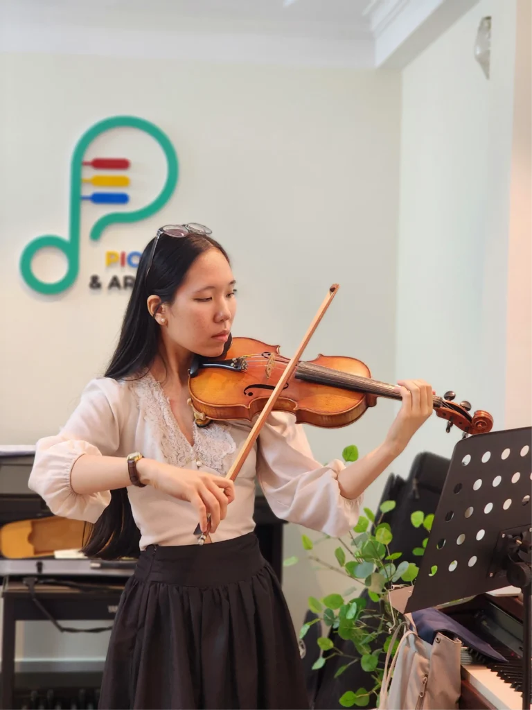 Pio áp dụng phương pháp đào tạo đặc biệt giúp học viên xây dựng khả năng cảm âm tinh tế. Bạn sẽ học cách tự nghe, tự cảm nhận và điều chỉnh âm thanh chuẩn xác – một kỹ năng vàng không chỉ cho Violin mà cho mọi loại hình nghệ thuật khác.